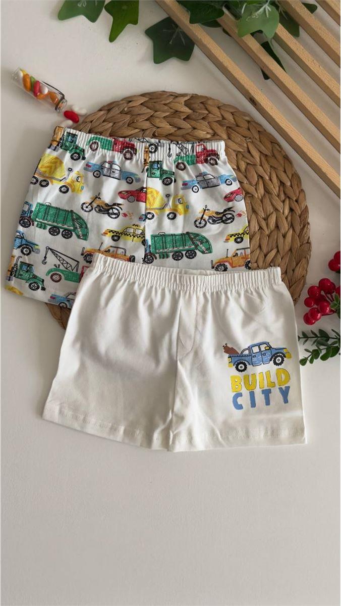 0074 Araba Desenli İkili Erkek Çocuk Boxer BEYAZ