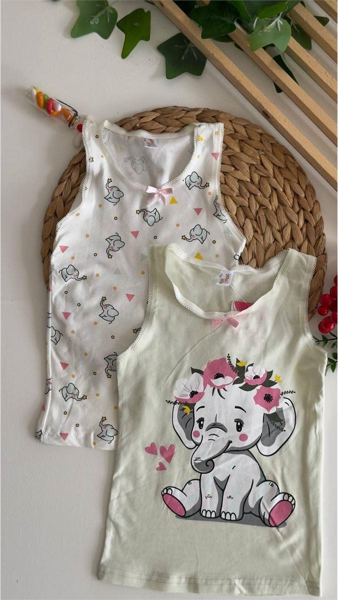 0080 Fil Desenli İkili Kız Çocuk Atlet SU YEŞİLİ