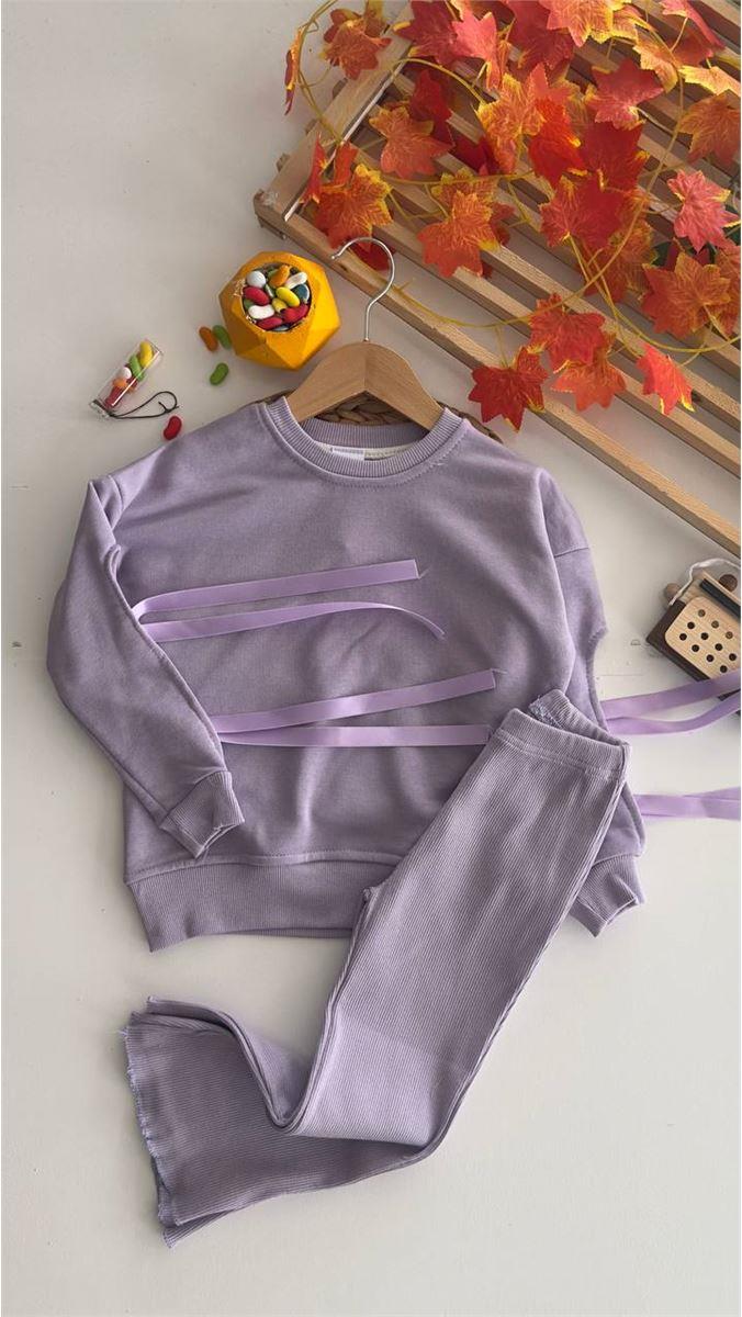 0103 Kolları Yırtmaçlı Kurdale Detaulı Kız Çocuk Takım LİLA