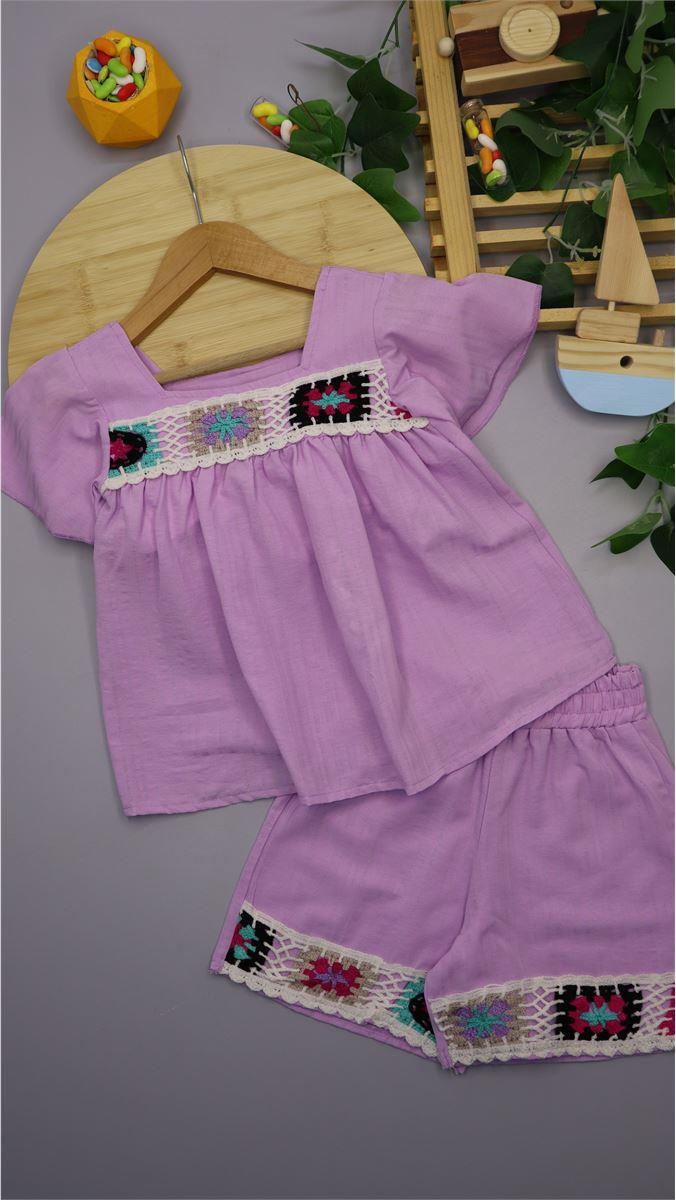 0206 Dantelli Şortlu İkili Kız Takım LİLA