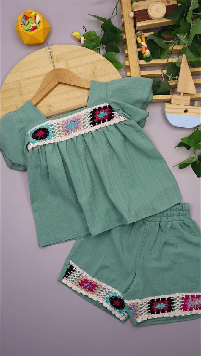 0206 Dantelli Şortlu İkili Kız Takım YEŞİL