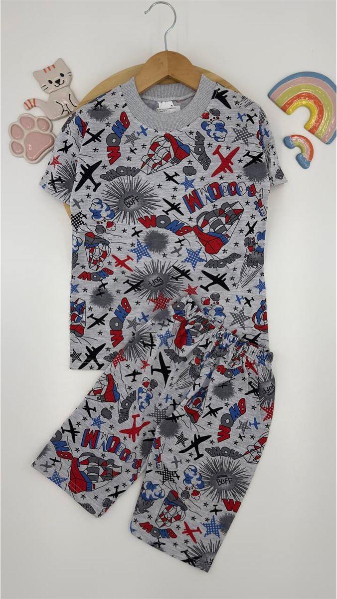 0207-3 Uçak Desenli Erkek Çocuk Takım GRİ
