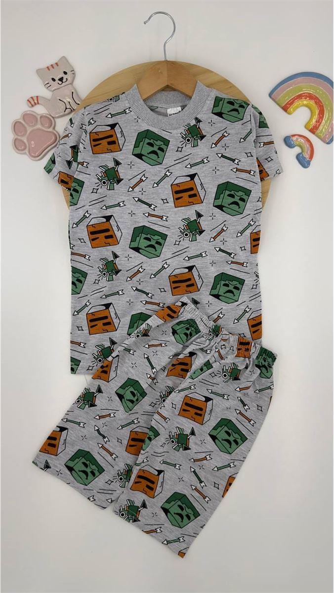 0207-7 Minecraft Desenli Erkek Çocuk Takım GRİ