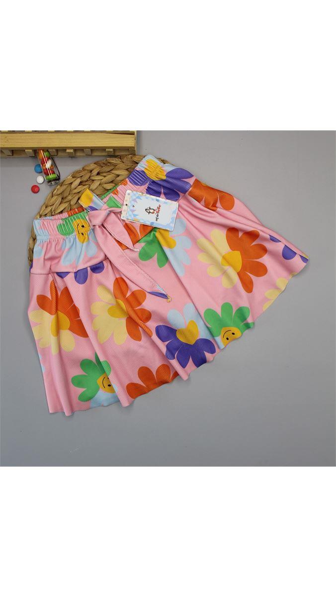 022-3 Çiçek Dsenli Dijital Etek PEMBE