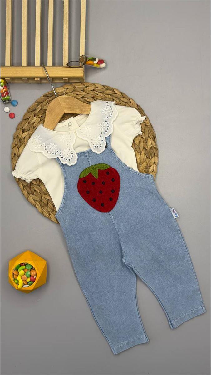 0222 Çilekli İkili Kız Tulum BEYAZ 0222 Çilekli İkili Kız Tulum PEMBE