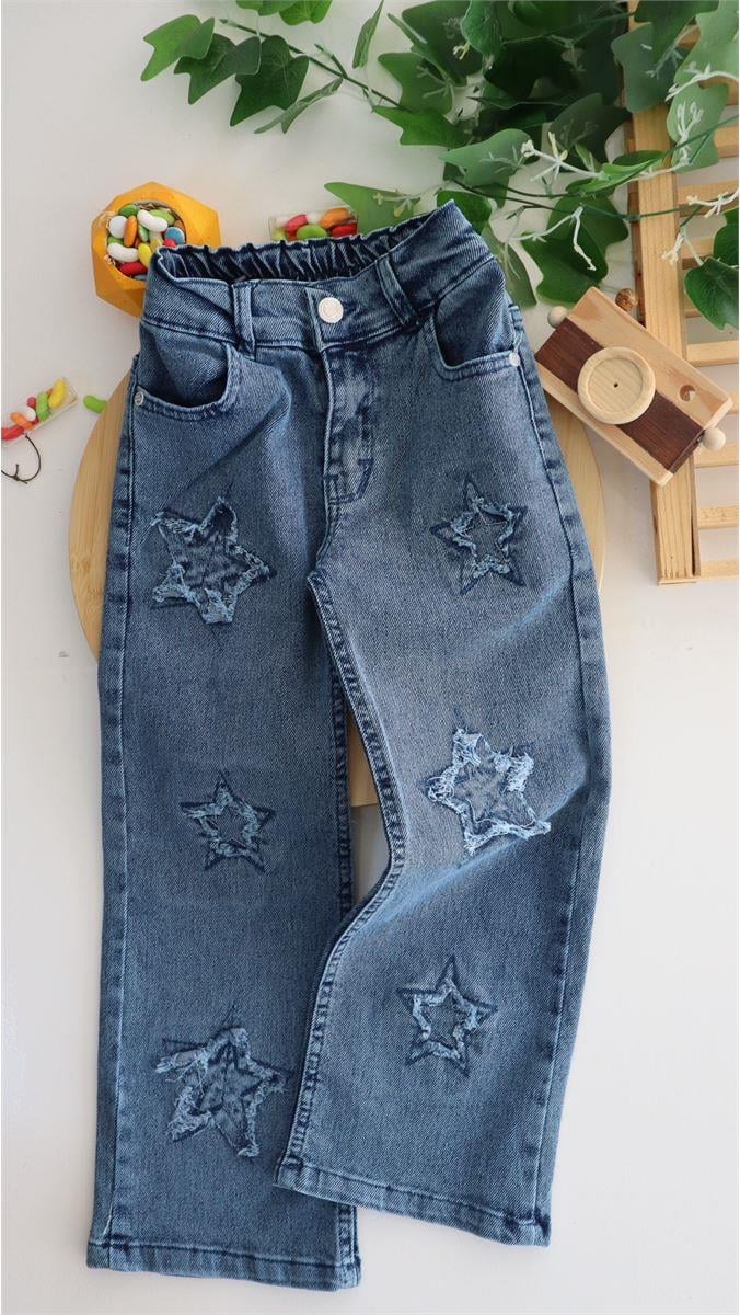 0236-3 Yıldızlı Kız Çocuk Kot Kapntolon (6-10 Yaş) MAVİ