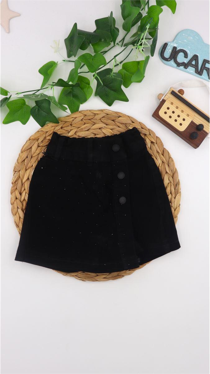 0276-2 Taş Detaylı Şortlu Kot Etek SİYAH