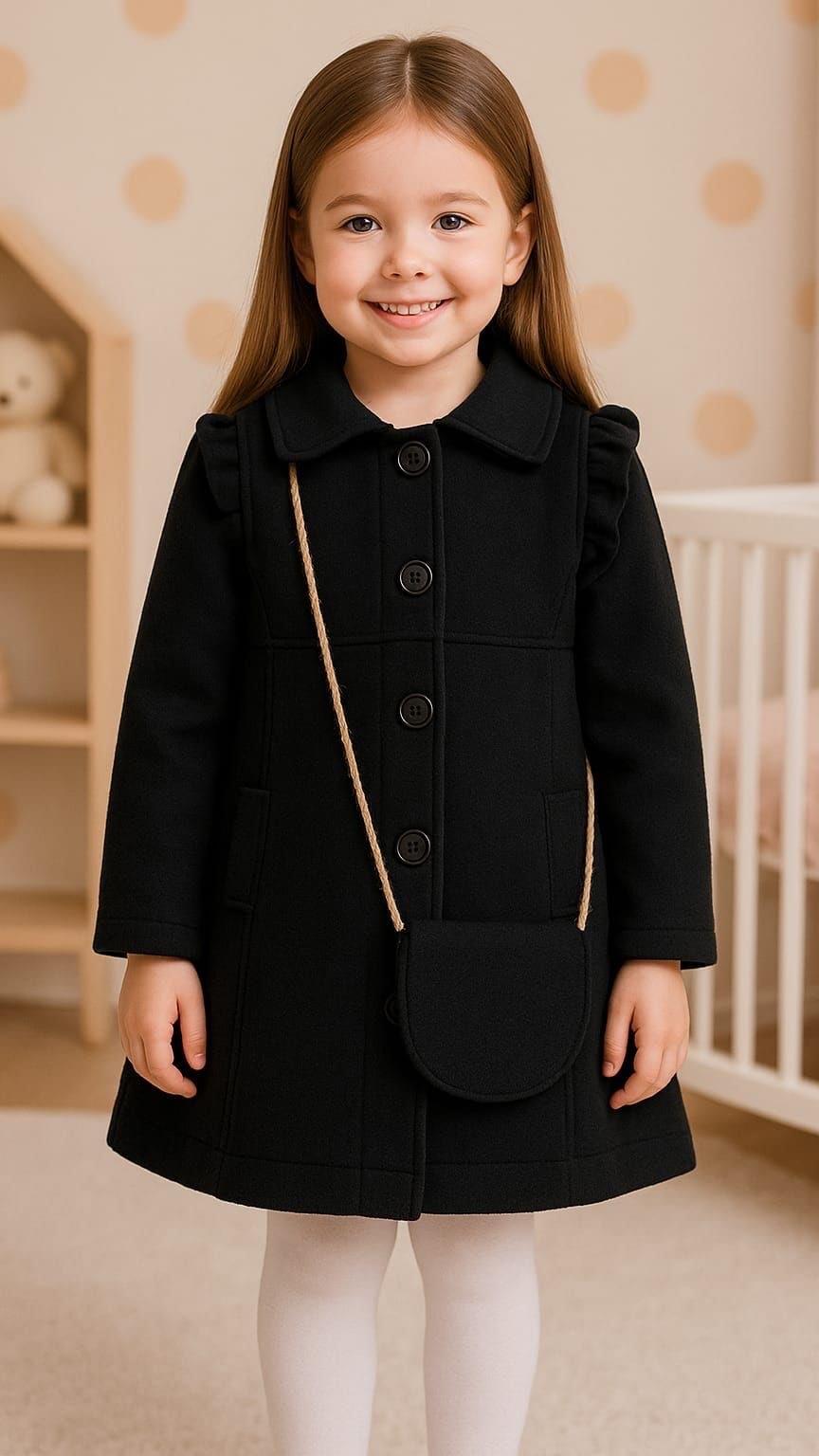 0309 Fırfırlı Kaşe Kaban Çantalı SİYAH