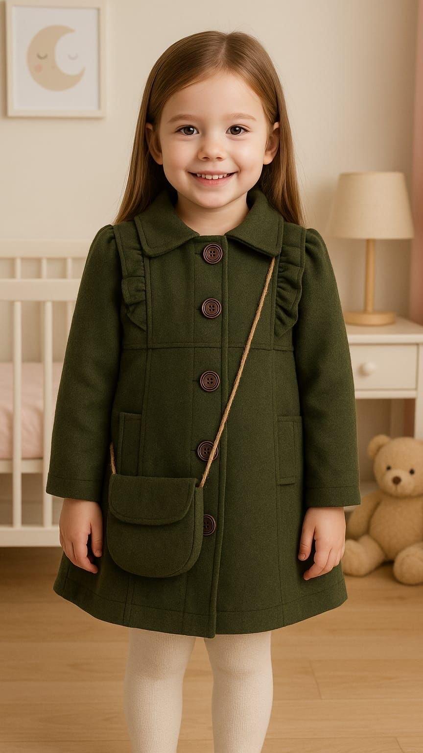 0309 Fırfırlı Kaşe Kaban Çantalı YEŞİL