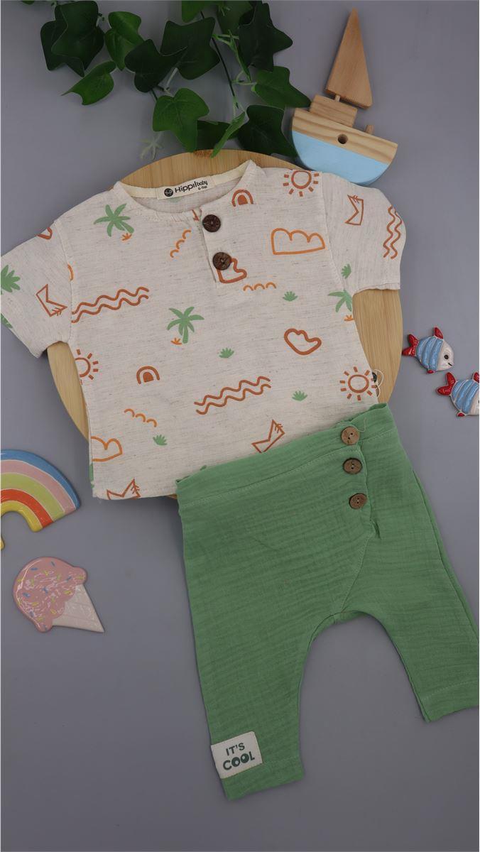 0520 Palmiye Desenli Müslin Kumaş Takım YEŞİL