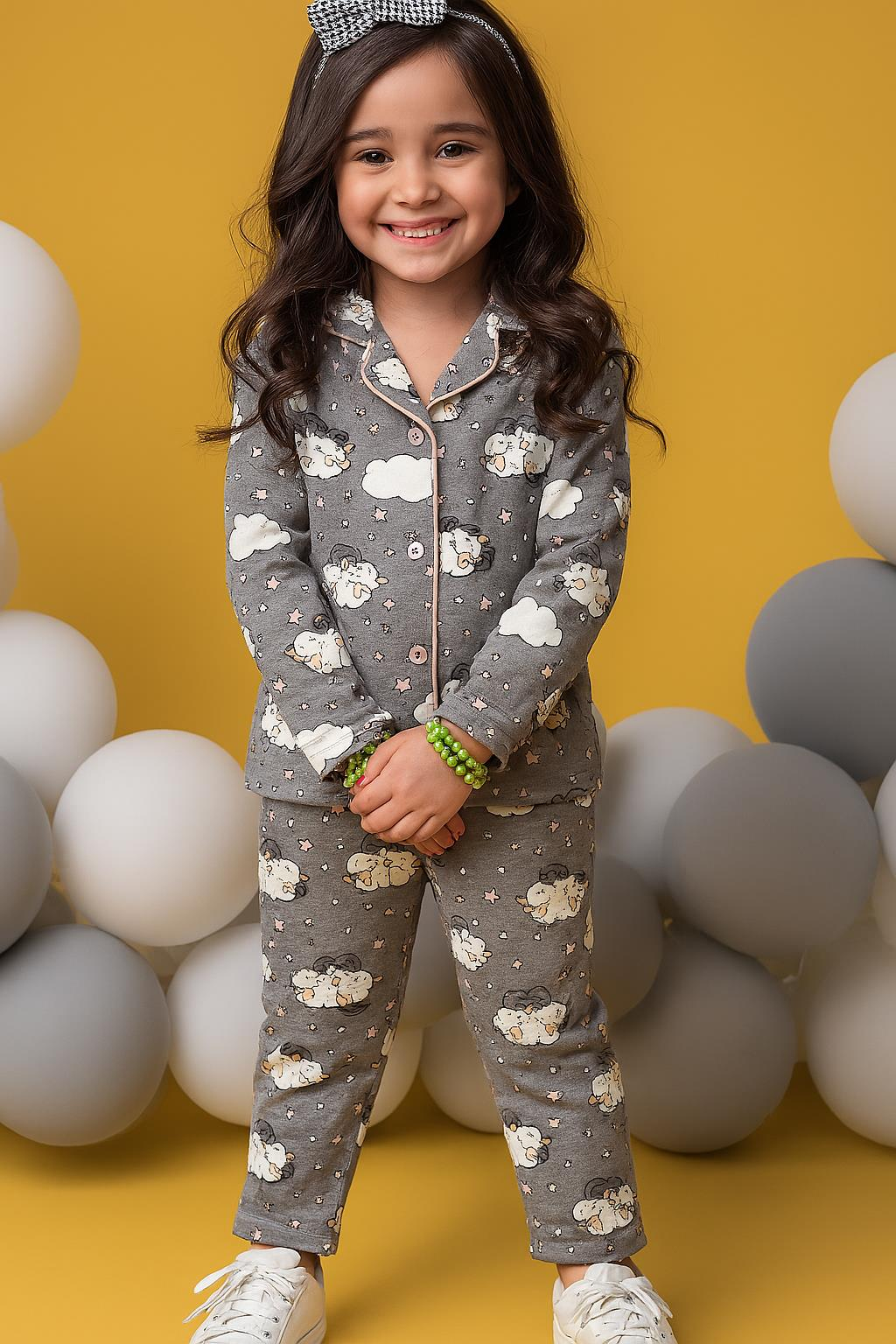 0605 Sevimli Kuzucuk Kız Çocuk Pijama Takım GRİ