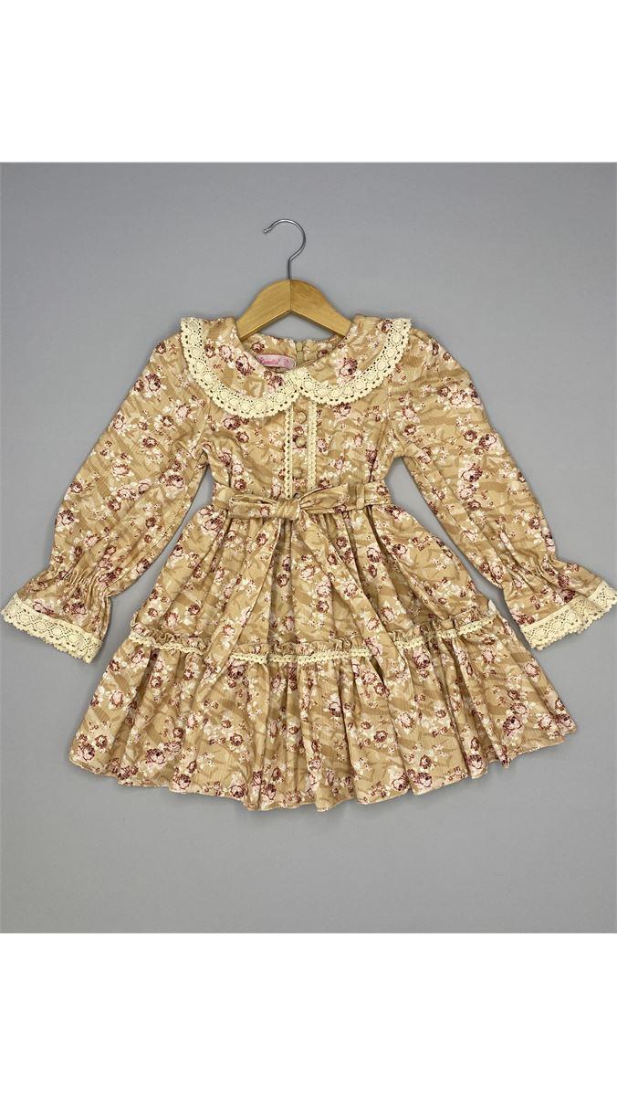 0653 Bebe Yaka Çiçekli Elbise KAHVERENGİ