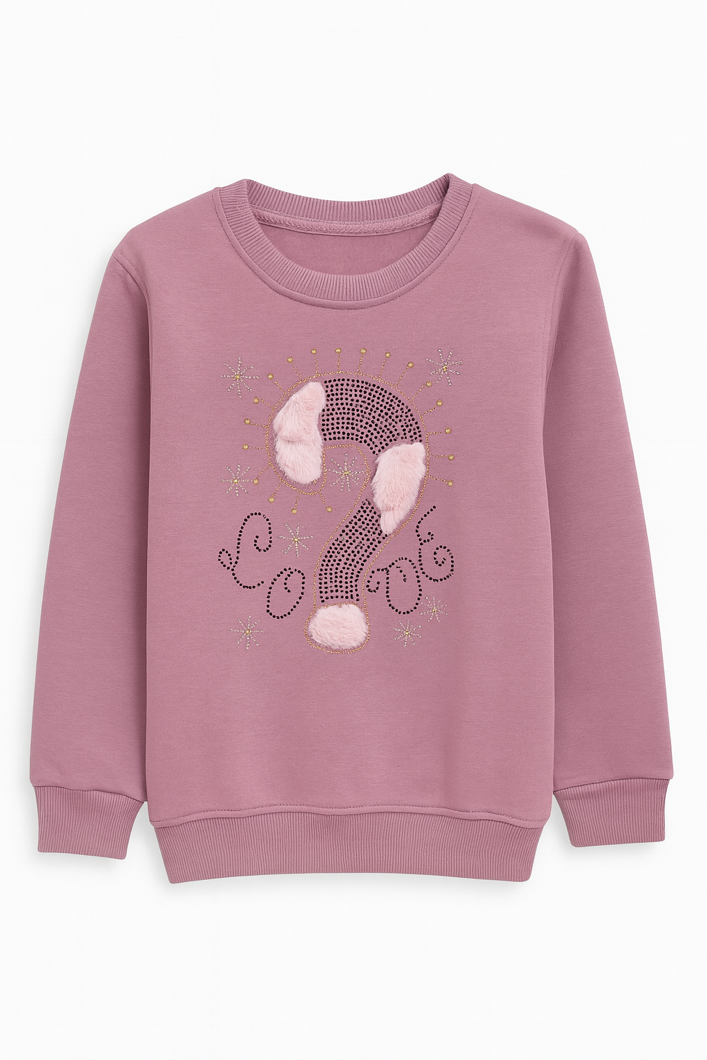 0904 Taşlı Peluş Soru İşaretli Sweat GÜLK