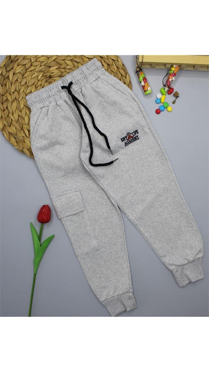 0906 Kargo Cepli Nakış İşlemeli Eşofman Altı A-GRİ