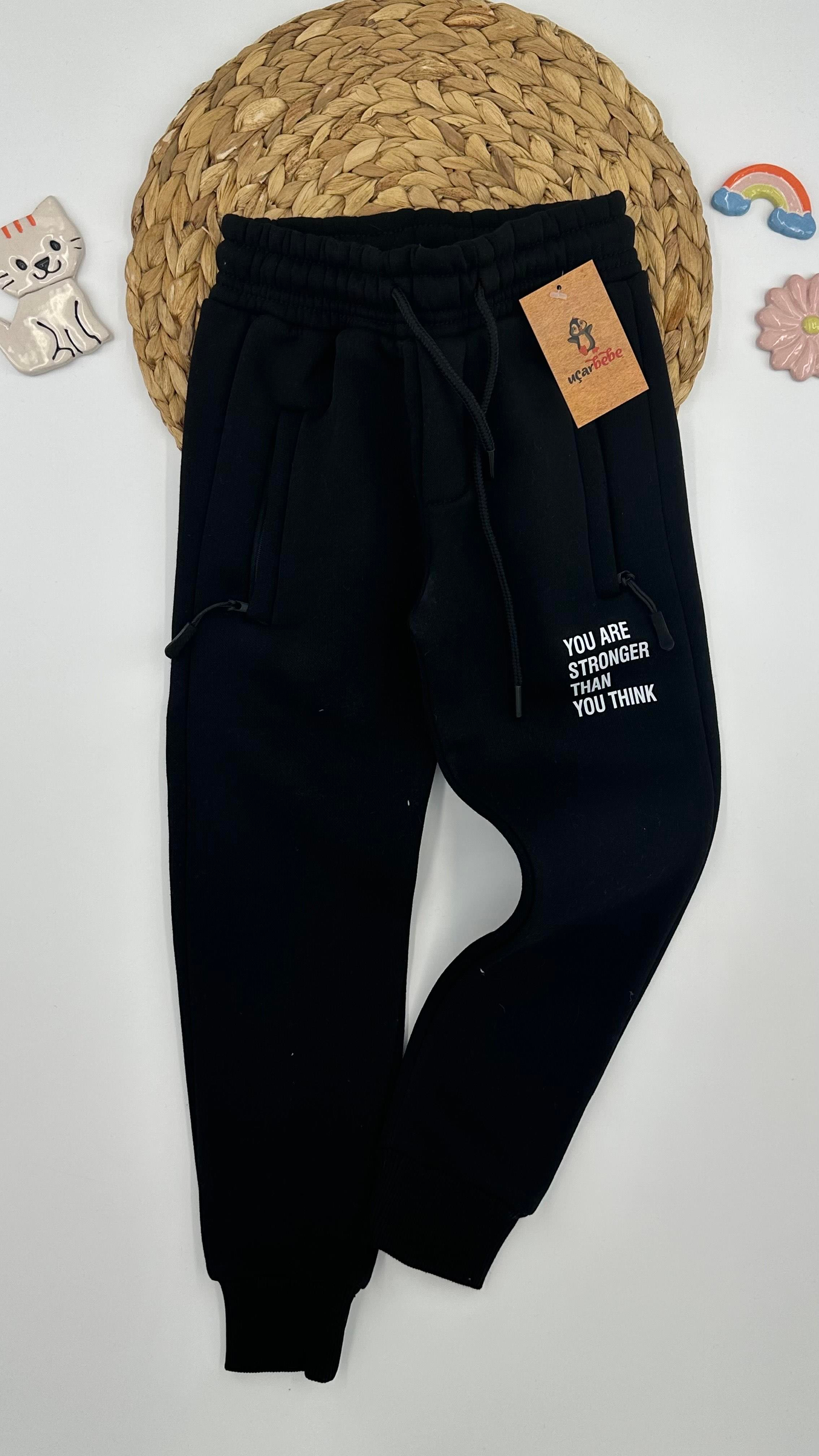 0910 Üç İplik Şardonlu Yazı Desenli Eşofman Altı SİYAH