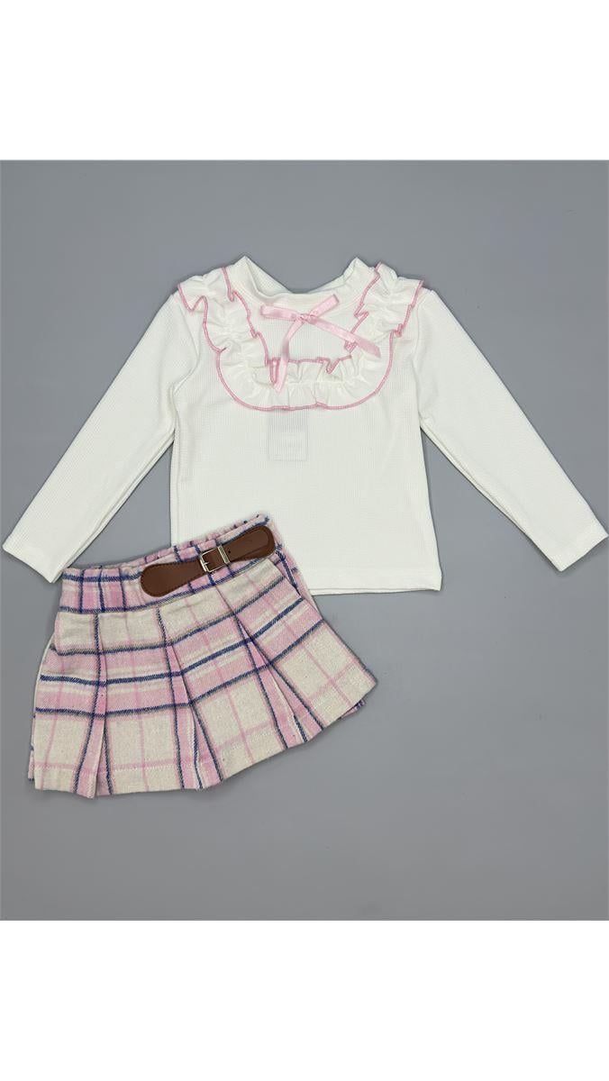 10073-74 Şort Etekli Ekose Takım PEMBE