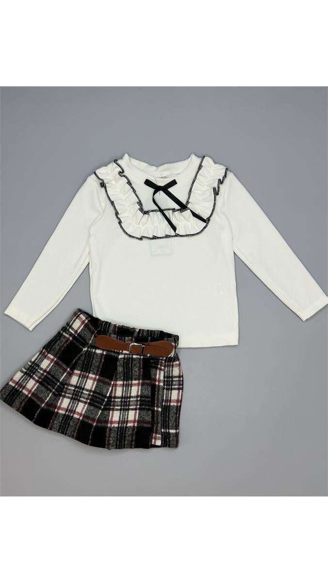 10073-74 Şort Etekli Ekose Takım SİYAH