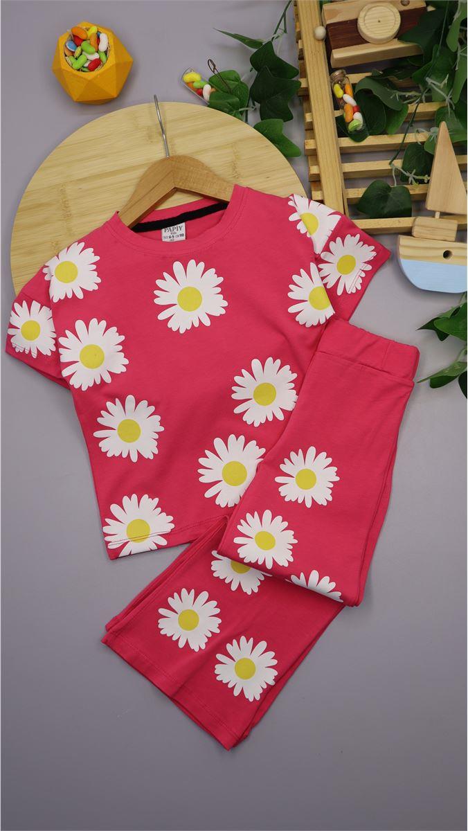 1008 Papatya Baskı Modelli Altı Keten Kız Takım FUŞYA
