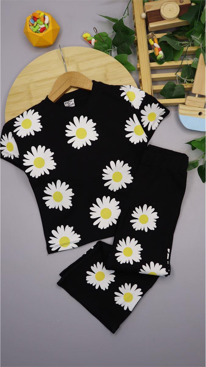 1008 Papatya Baskı Modelli Altı Keten Kız Takım SİYAH