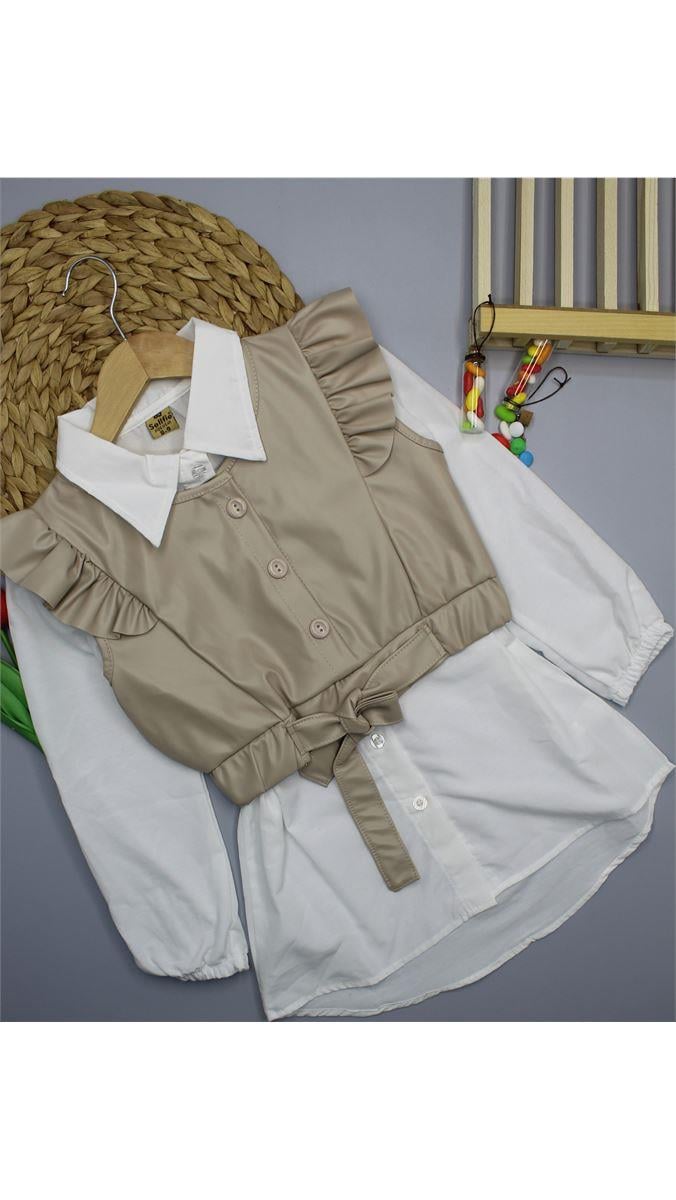 10080 Deri Süveterli İkili Gömlek TAŞ