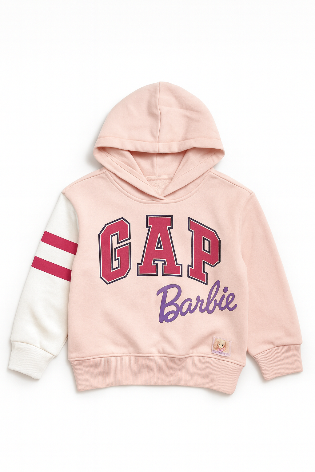 10112 Gap Baskılı Kapişonlu Üç İplik Kız Sweat PUDRA