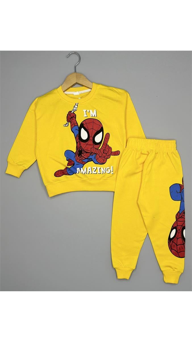 1013 Amazing Örümcek Baskılı Erkek Takım SARI