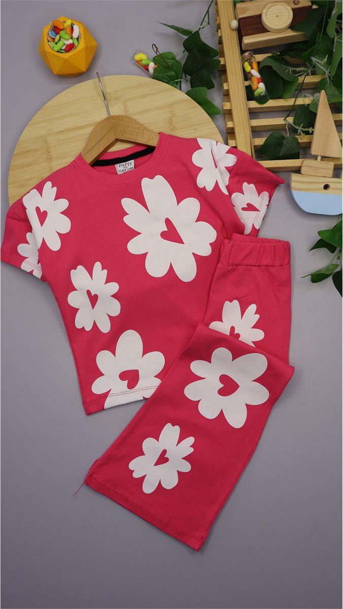 1013 Kalpli Çiçek Modelli Kız Takım FUŞYA