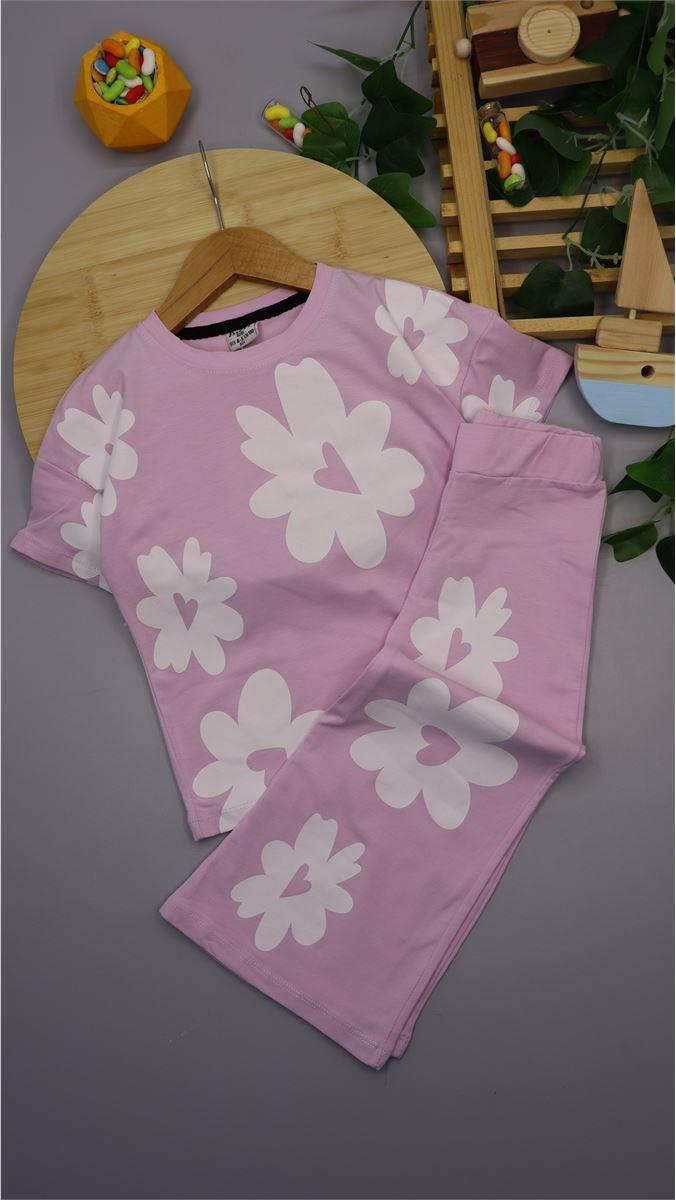 1013 Kalpli Çiçek Modelli Kız Takım LİLA