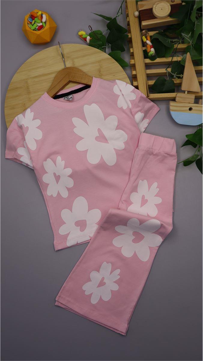 1013 Kalpli Çiçek Modelli Kız Takım PEMBE