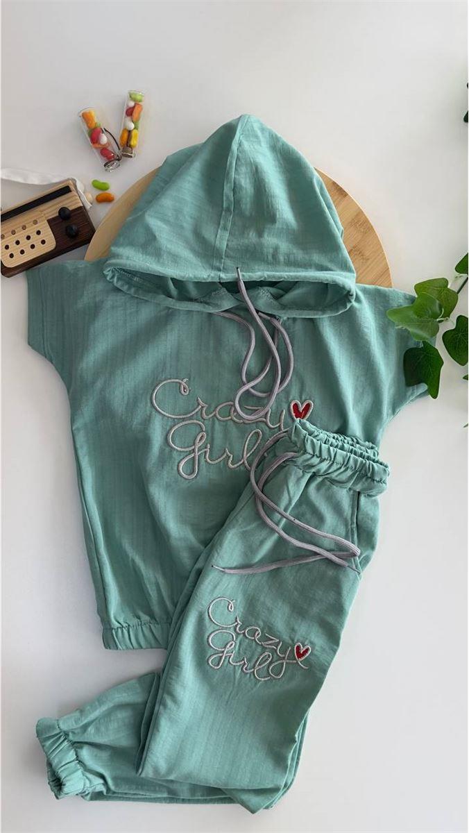 1015 Crazy Girl Yazılı Kapişonlu İkili Ayrobin Kız Takım YEŞİL
