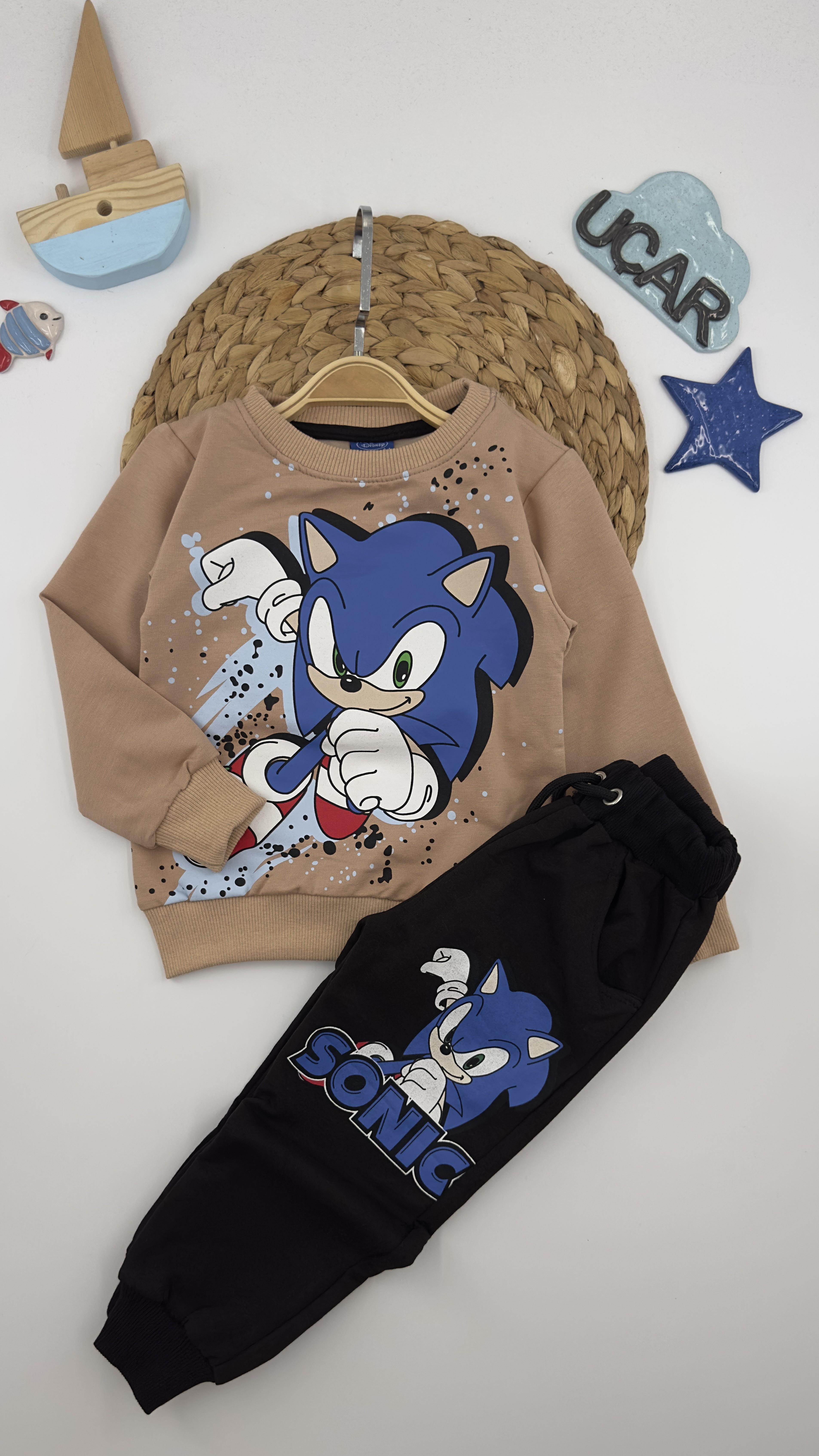 1025-1 Sonic Baskılı Erkek Çocuk Takım KAHVE