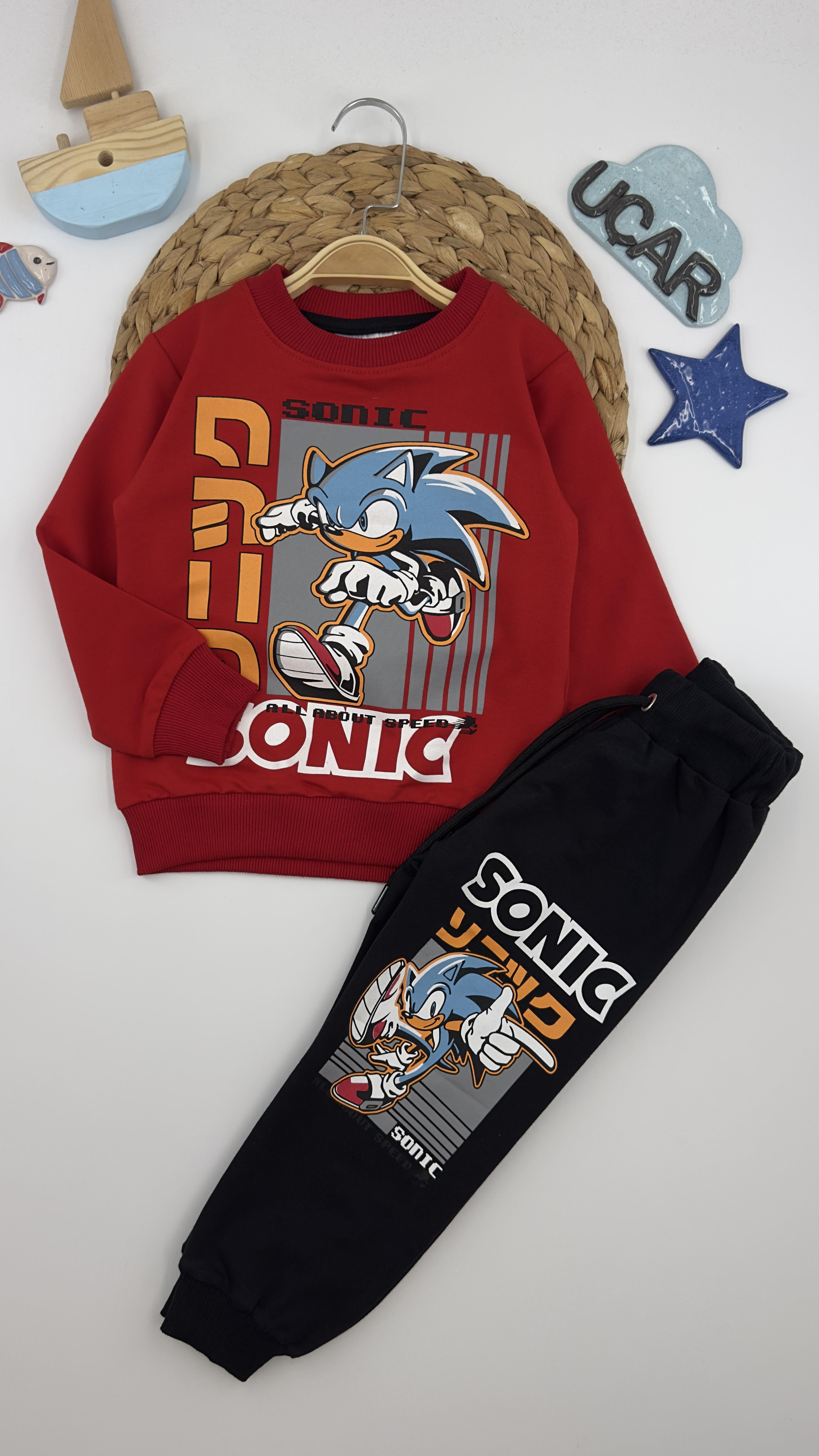 1025-4 Sonic Baskılı Erkek Çocuk Takım KIRMIZI