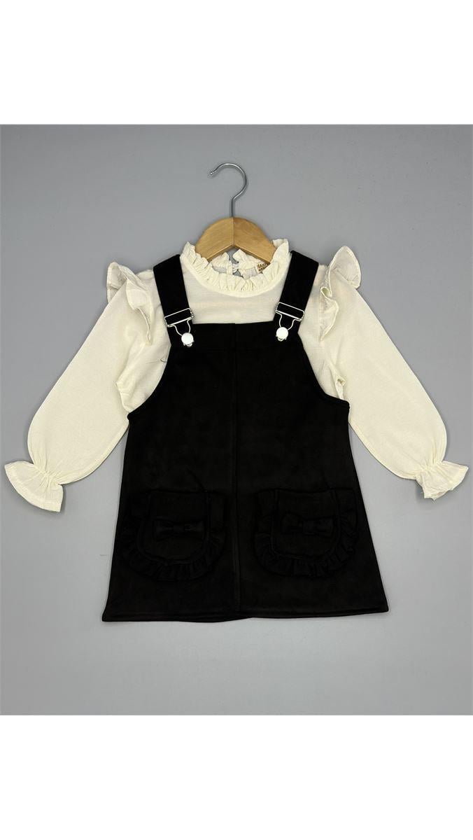 10477 Fırfır Cepli Gömlekli Salopet SİYAH