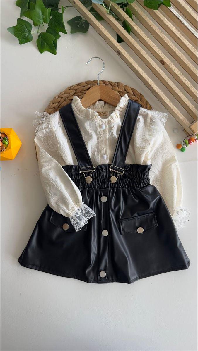 10482 Dantel Gömlekli Deri Salopet SİYAH