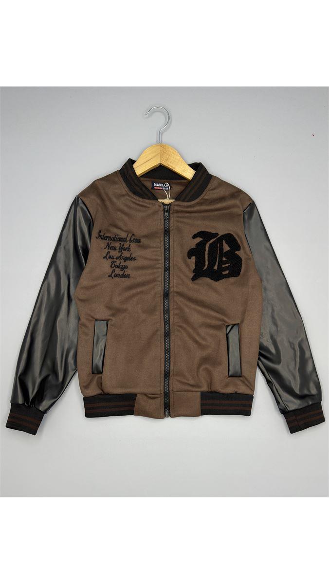 10524 Süet Kolu Deri Nakışlı Çıtçıtlı Kolej Ceket KAHVERENGİ