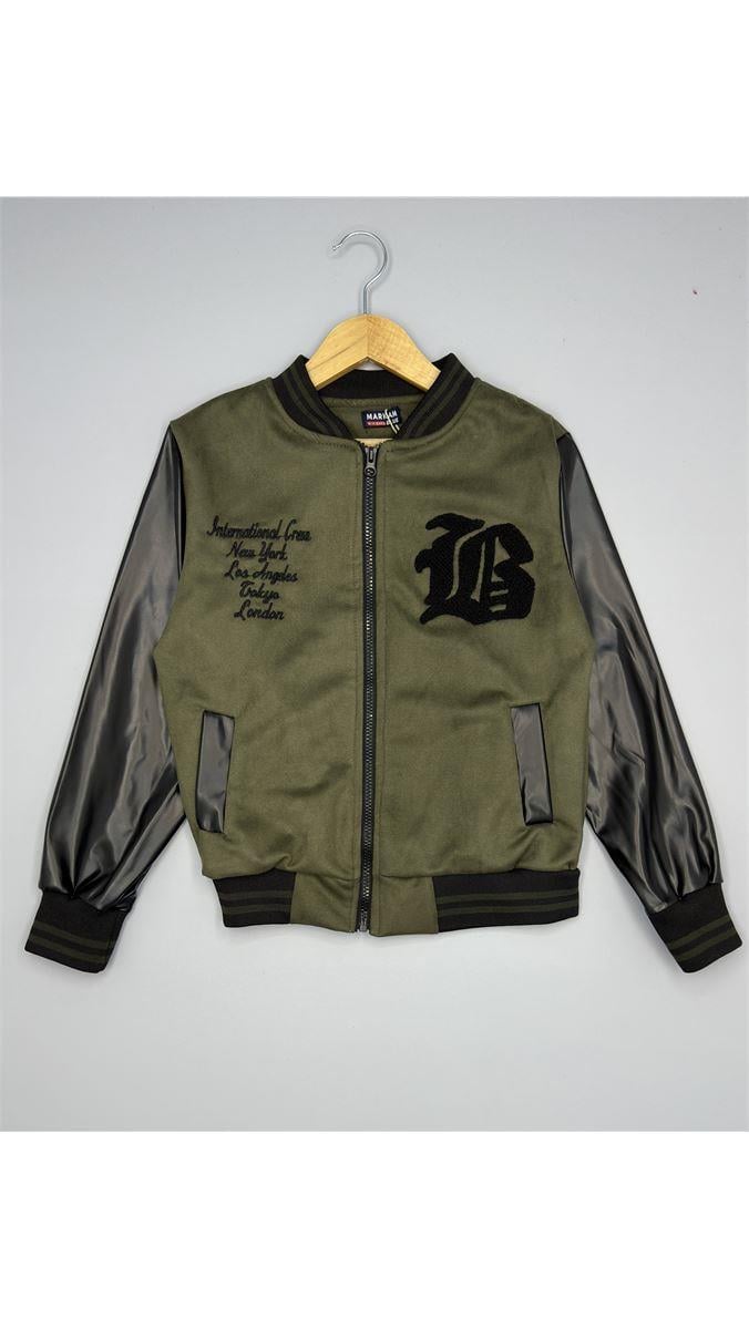 10524 Süet Kolu Deri Nakışlı Çıtçıtlı Kolej Ceket YEŞİL