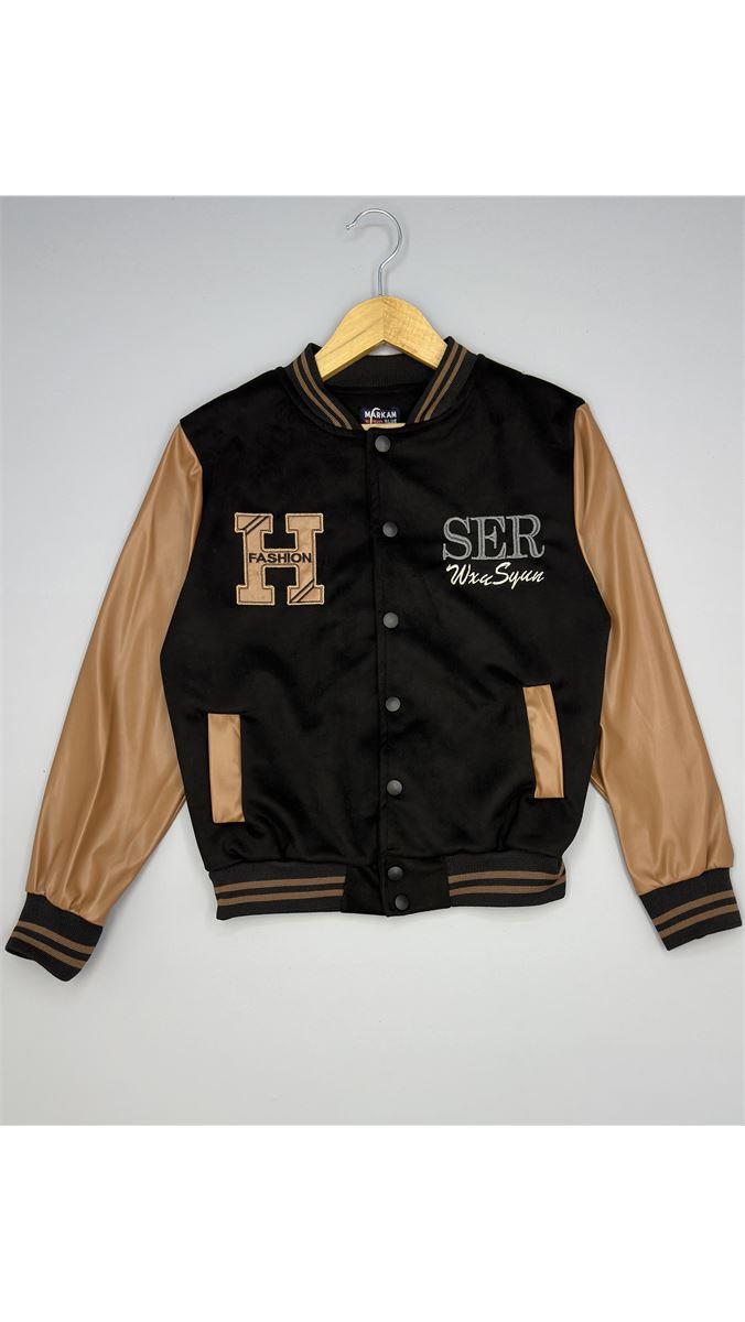 10526 Süet Kolu Derili H Nakışlı Kolej Ceket SIYAH