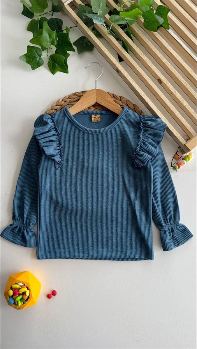 10532-33 Omuz Fırfır Detaylı Kol Ağzı Lastikli Body PETROL MAVİSİ