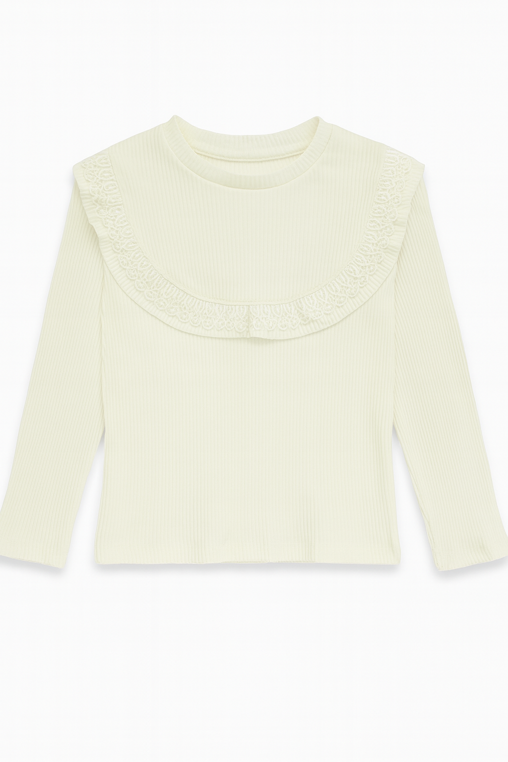 1060 Dantel Yakalı Kız Çocuk Body KREM