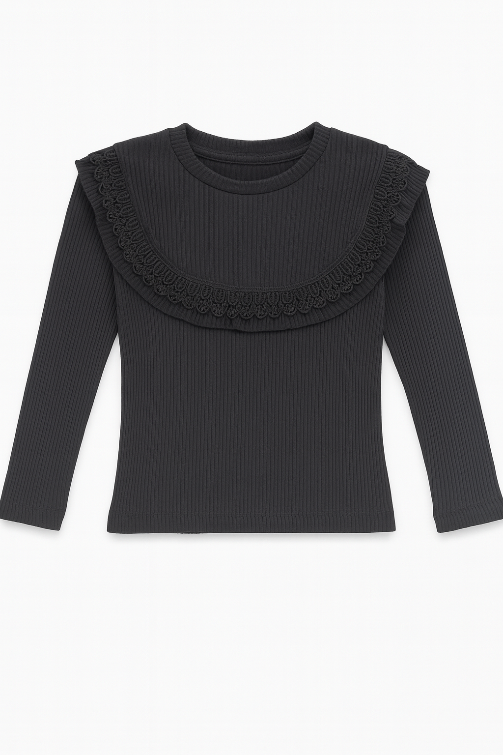 1060 Dantel Yakalı Kız Çocuk Body SİYAH