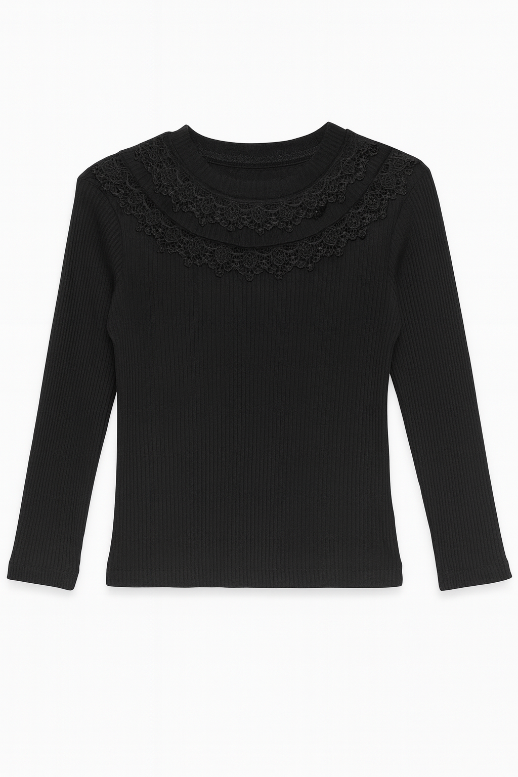 1065 Çift Dantel Detaylı Kız Çocuk Body SİYAH