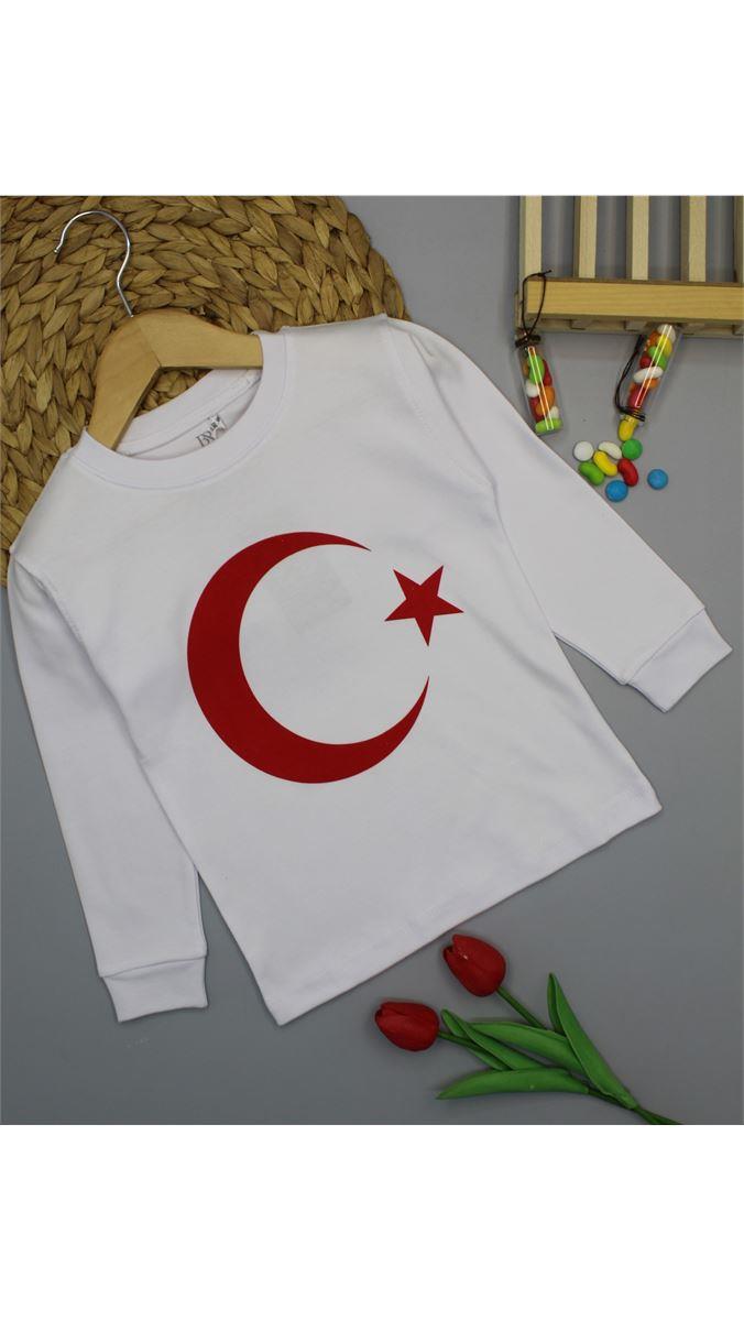 1078 Ayyıldız Uzun Kol T-Shirt BEYAZ 1078 Ayyıldız Uzun Kol T-Shirt KIRMIZI