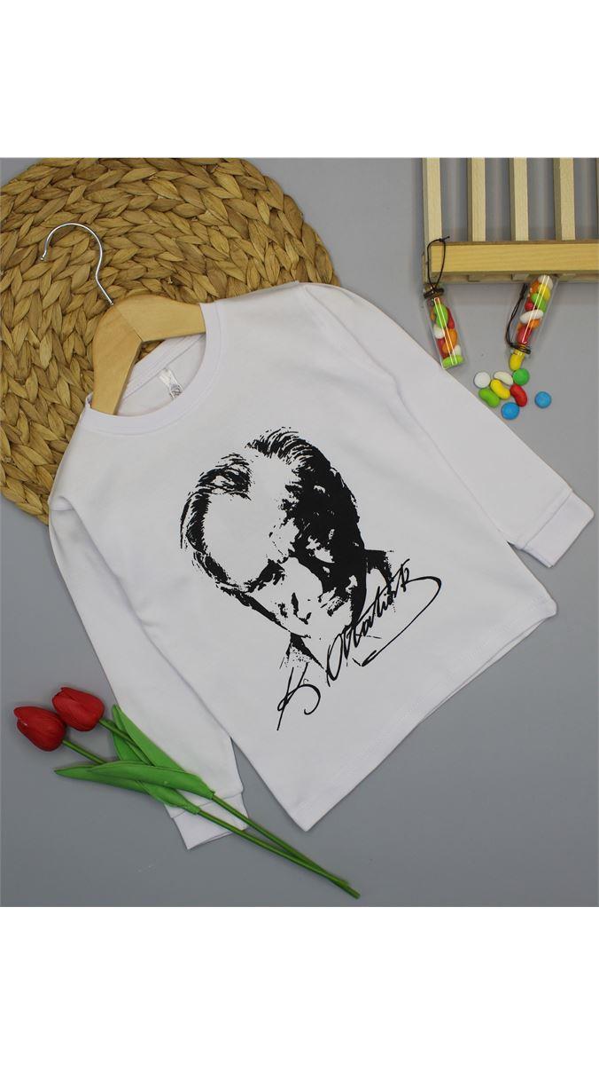 1081 Atatürk Baskılı Uzun Kol T-Shirt 5-8 Yaş BEYAZ