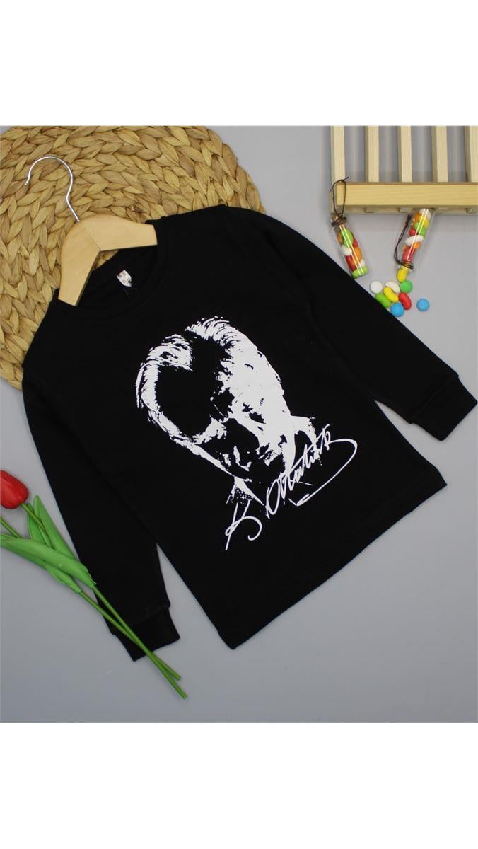 1083 Atatürk Baskılı Uzun Kol T-Shirt 13-16 Yaş SİYAH