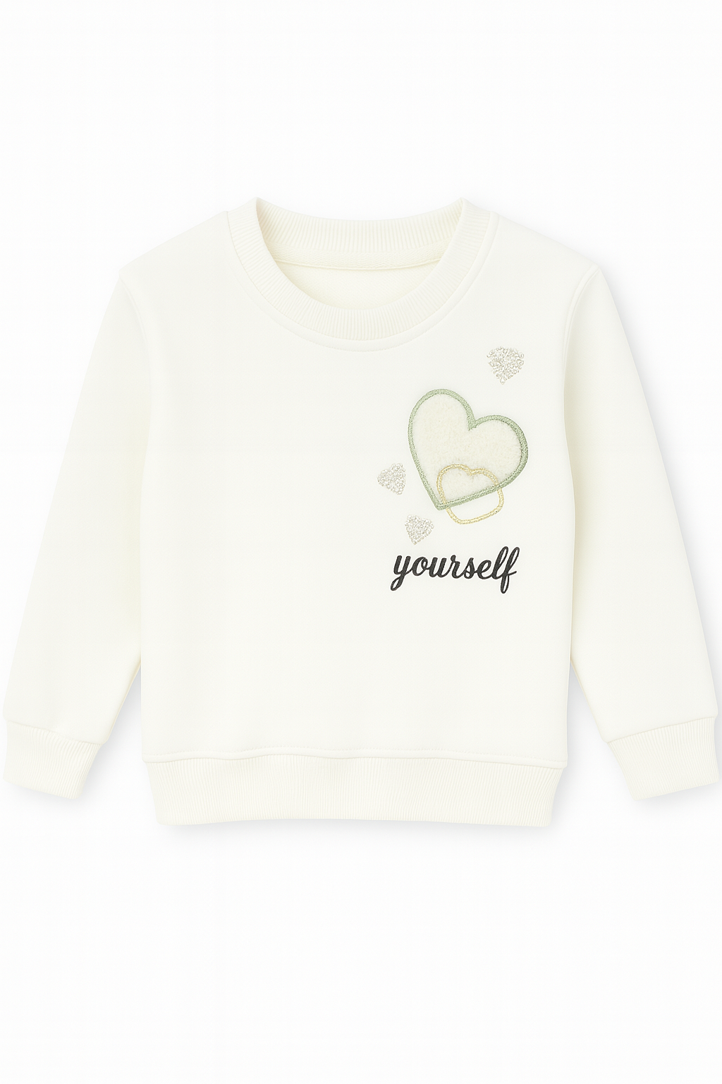 10903 Kalp Nakışlı Yossey Yazılı Şardonlu Sweat KREM