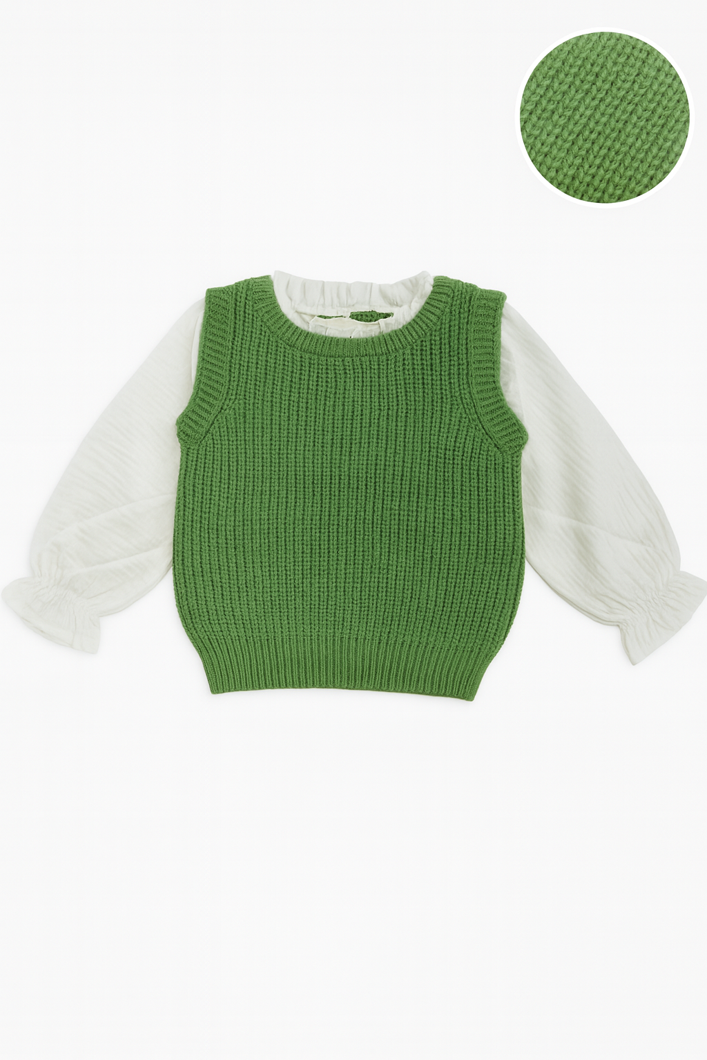 1148 Dokuma Kumaş Sahte Gömlekli Kazak YEŞİL