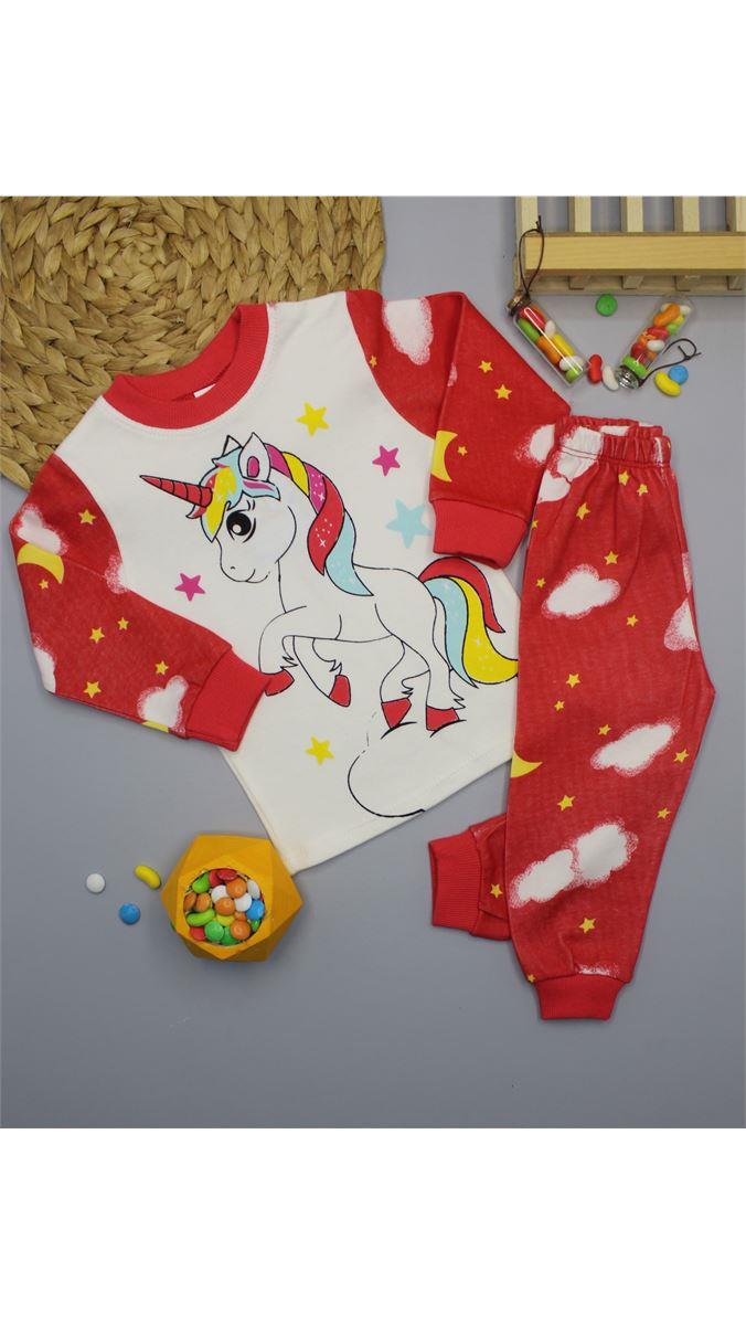 1165 Bulutlu Atlı Pijama Takımı NAR ÇİÇEĞİ