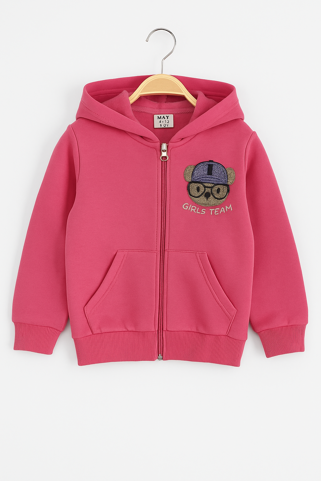1166 Teddy Girls Kız Kapişonlu Hırka PEMBE 1166 Teddy Girls Kız Kapişonlu Hırka GÜLK