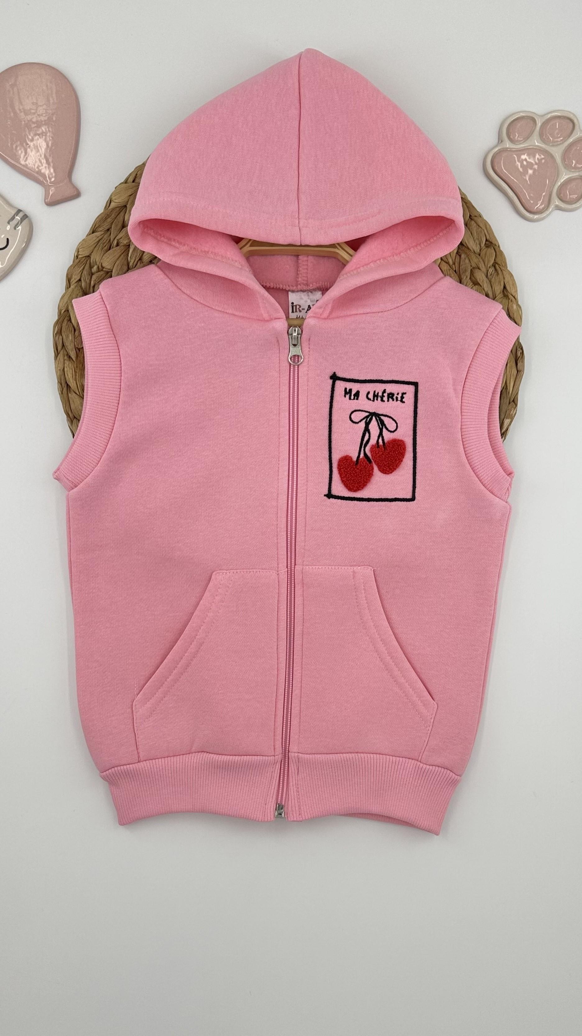 1173 Kiraz Desenli Kız Yelek PEMBE