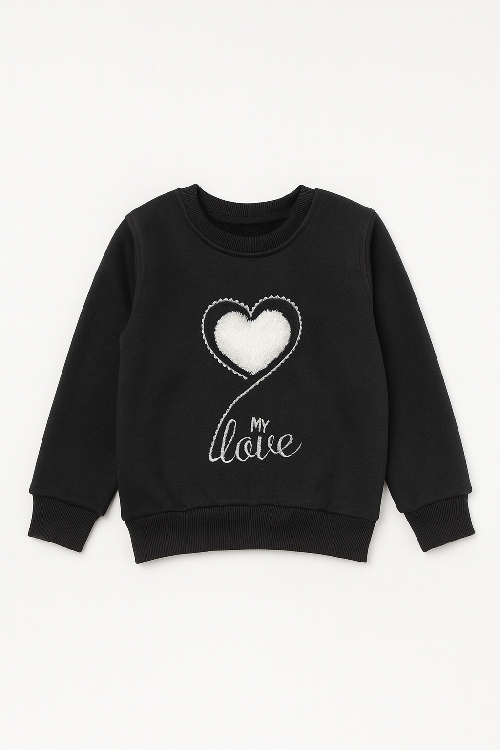 11902 Kalp Nakışlı Şardonlu Sweat SİYAH